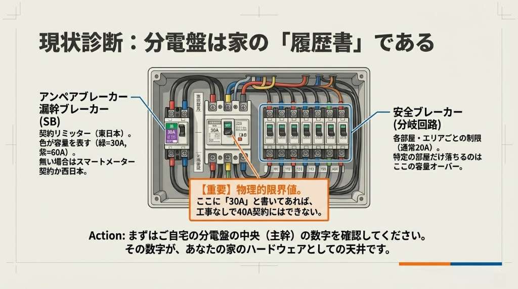本記事では、ご自宅の電気契約と設備の現状を正確に把握する方法から、世帯構成ごとの適正なアンペア数の目安、そして容量アップを阻む構造的な原因と解決策について、専門的な視点に基づき徹底解説します。
