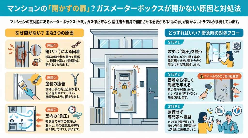 この記事では、メーターボックスの扉が開かない原因を、物理的な視点と環境的な視点の両面から徹底的に整理します。
