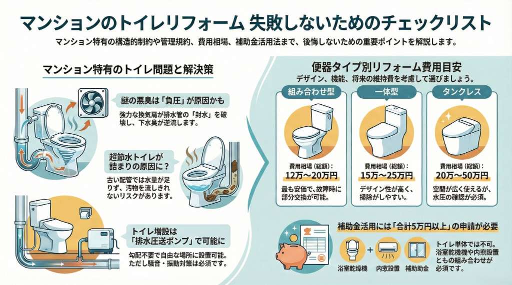 マンションのトイレリフォームは、目に見える機器だけでなく「見えない配管・構造・規約」への配慮が成功の鍵です。信頼できる専門家と共に、長期的な快適性を手に入れましょう。